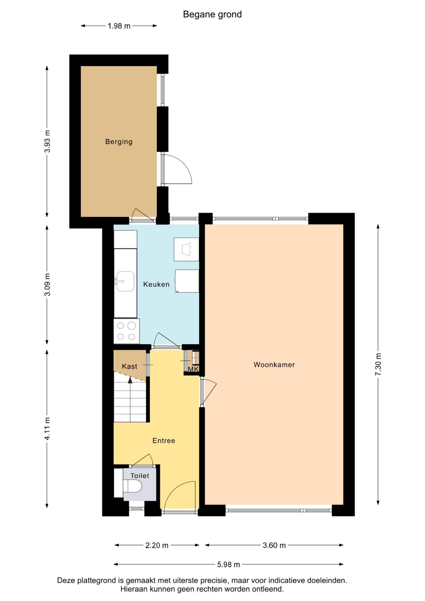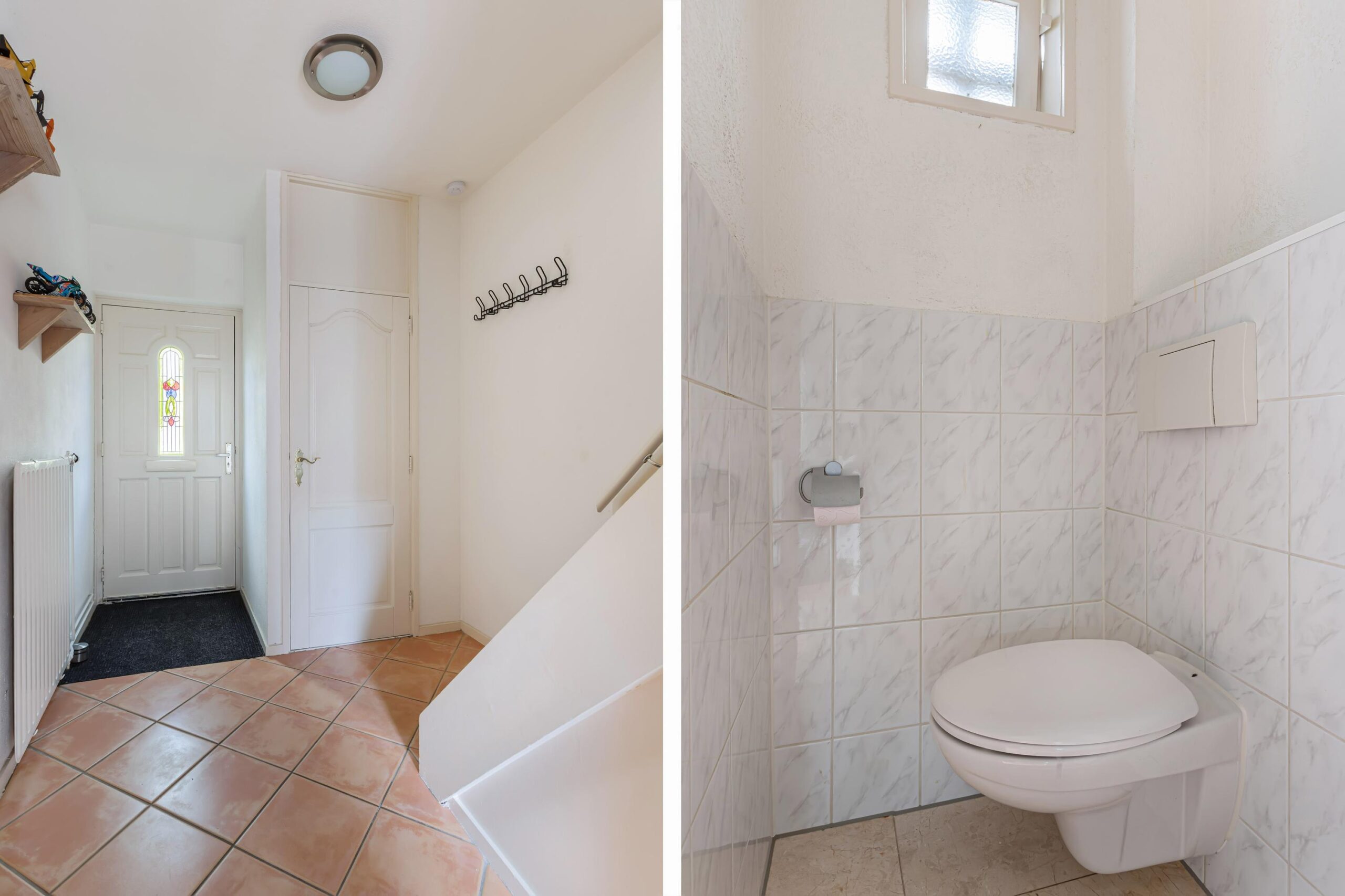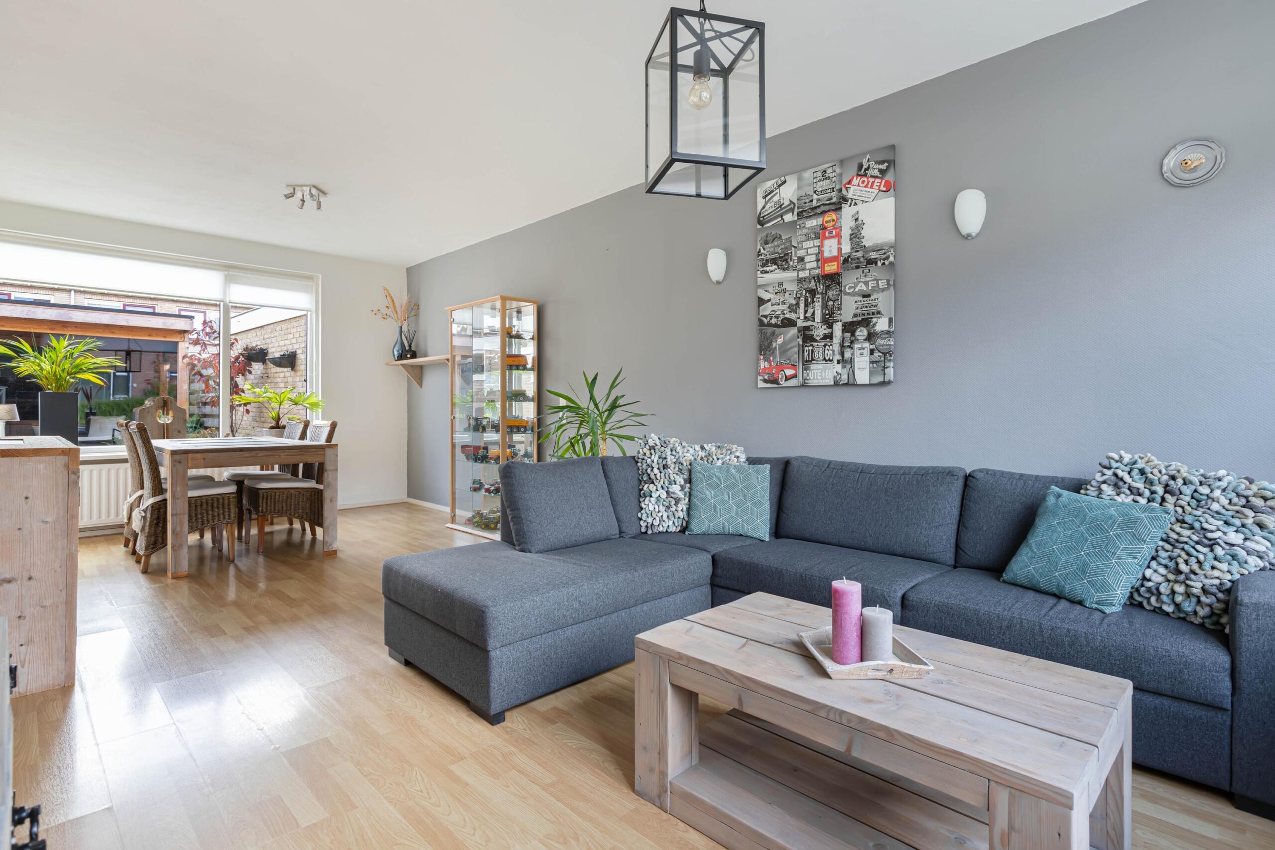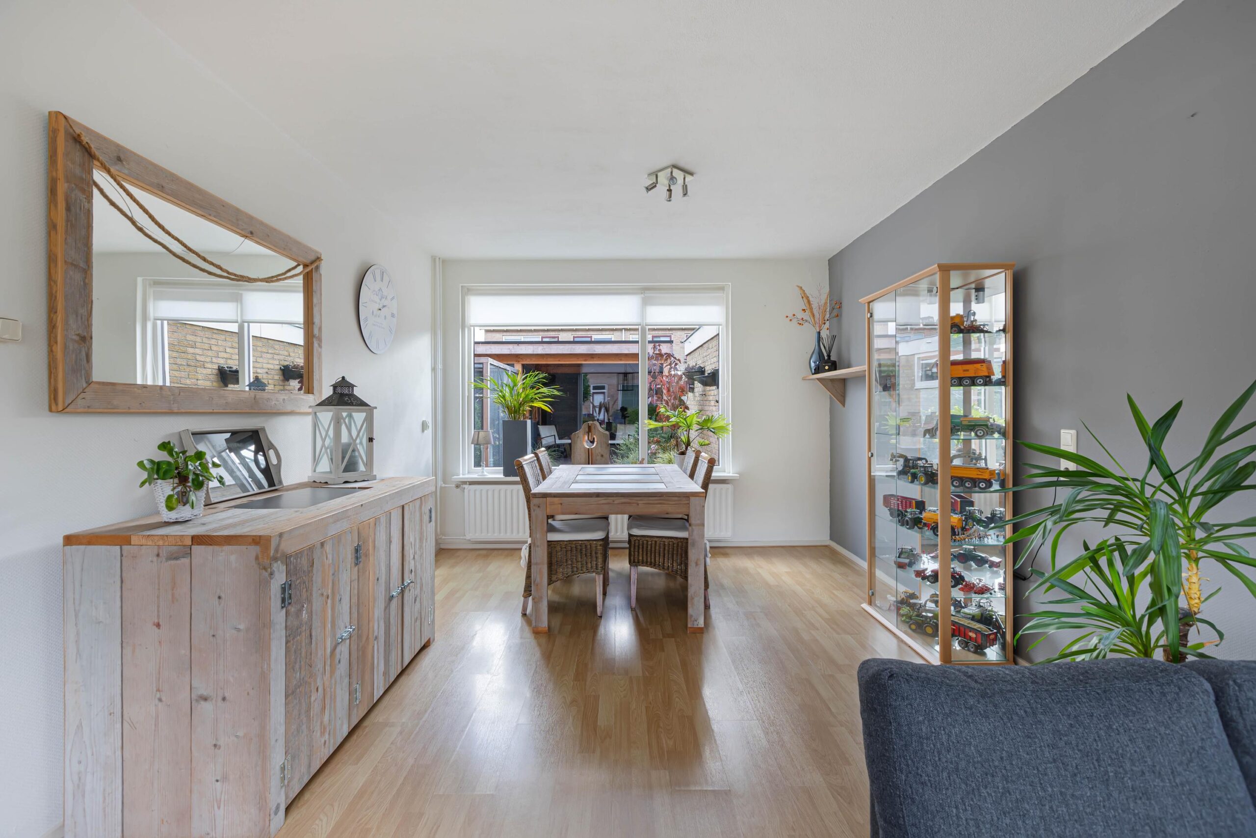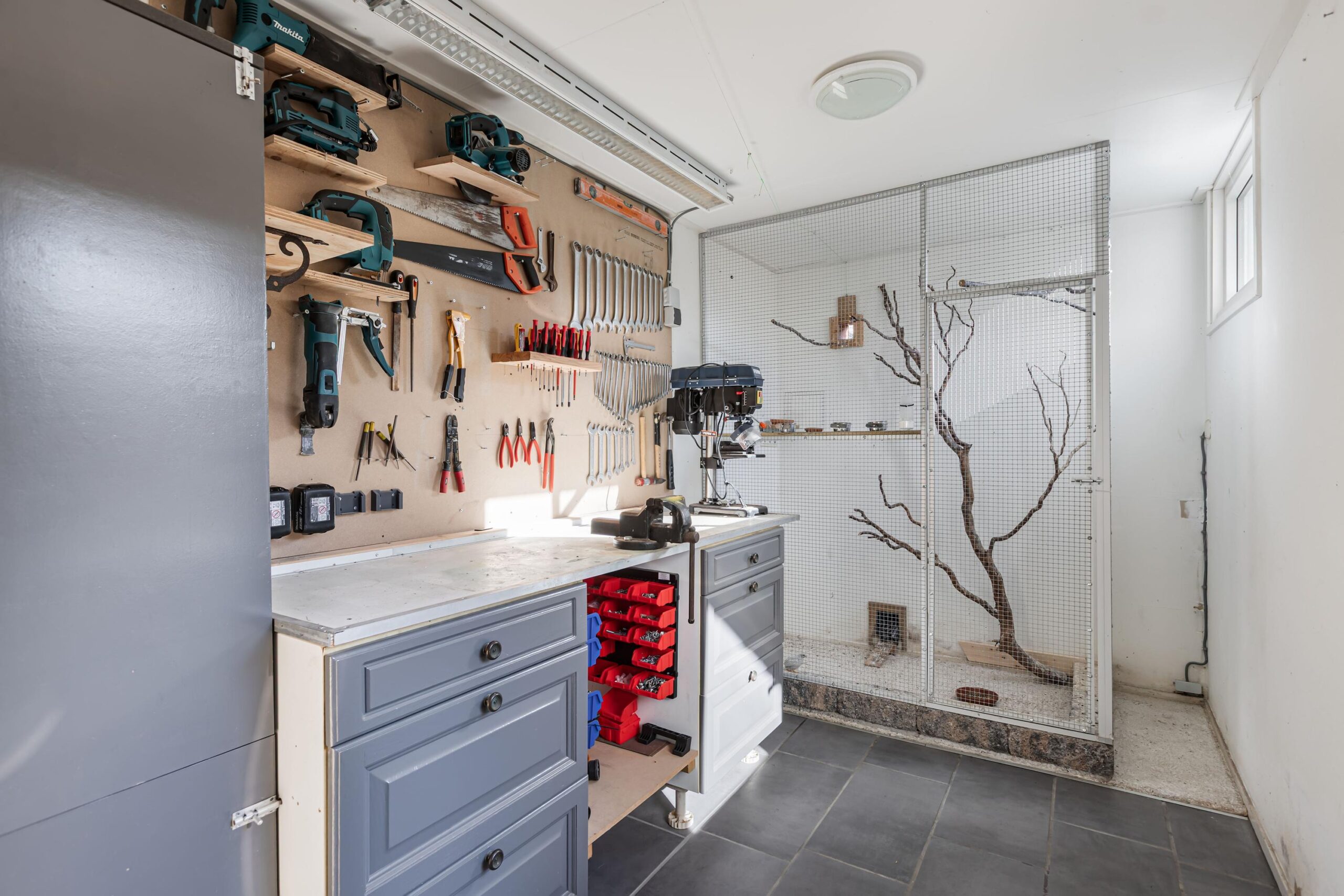 Aan de voorzijde is de entree met aansluitend de hal. De hal is ingericht met de meterkast, garderoberuimte en de trapopgang, trapkast en biedt toegang tot de woonkamer. De doorzonwoonkamer geniet van grote kunststof raampartijen aan zowel de voor- als achterzijde, waarlangs veel daglicht binnenvalt. Aan de straatzijde is de zithoek gesitueerd en aan de achterzijde de ruime eetkamertafel. Vanuit de woonkamer is er prachtig zicht op de fraaie aangelegde tuinen. De plafonds zijn strak afgewerkt en de vloer is bedekt met een neutrale laminaatvloer. De dichte keuken is vanuit de hal toegankelijk en is ingericht met een keukenblok in lichte kleurstelling. De keuken is voorzien van diverse losstaande apparatuur te weten; een koel-vriescombinatie, magnetron en een fornuis met oven en de afzuigkap. In de keuken is tevens de opstelplaats voor de wasmachine. Op deze plek is het ook mogelijk om een vaatwasmachine te plaatsen. Aangrenzend is de praktische bijkeuken waar eveneens een aansluitingen is voor het witgoed. Daarnaast is de bijkeuken ingericht met een werkbank (gaat mee) en een tuindeur, uitgevoerd in kunststof. De bijkeuken is voorzien van muur, dak en glasisolatie. Een bijzonder detail is de opstelling van de volière die nu deels in de bijkeuken is geïntegreerd en in verbinding staat met de volière buiten. Deze volière wordt bij de verkoop verwijderd.